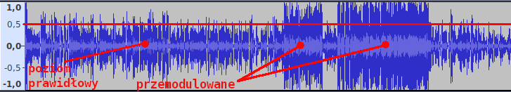 Optymalny poziom audio +/- 0.5, sprawdź plik WAV w programie Audacity